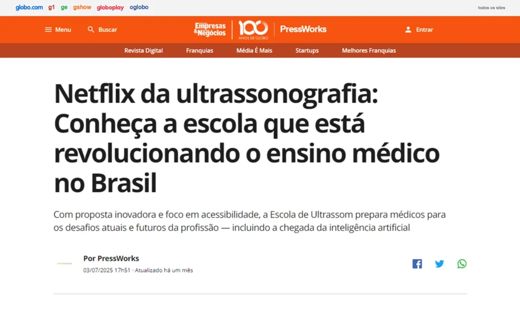 É por isso que criamos a primeira escola de ultrassom por assinatura do Brasil, para poder ter o essencial de cada especialidade, estudos de casos e conhecimento de ultrassom, e ainda ter acesso a diversos professores e especialistas por um preço acessível.