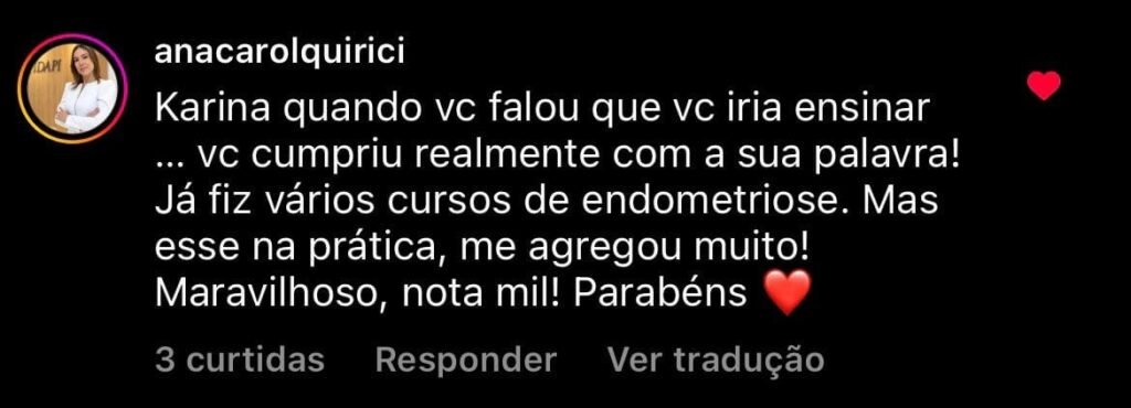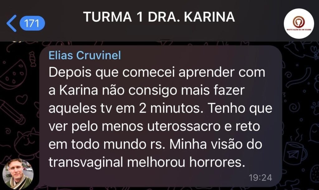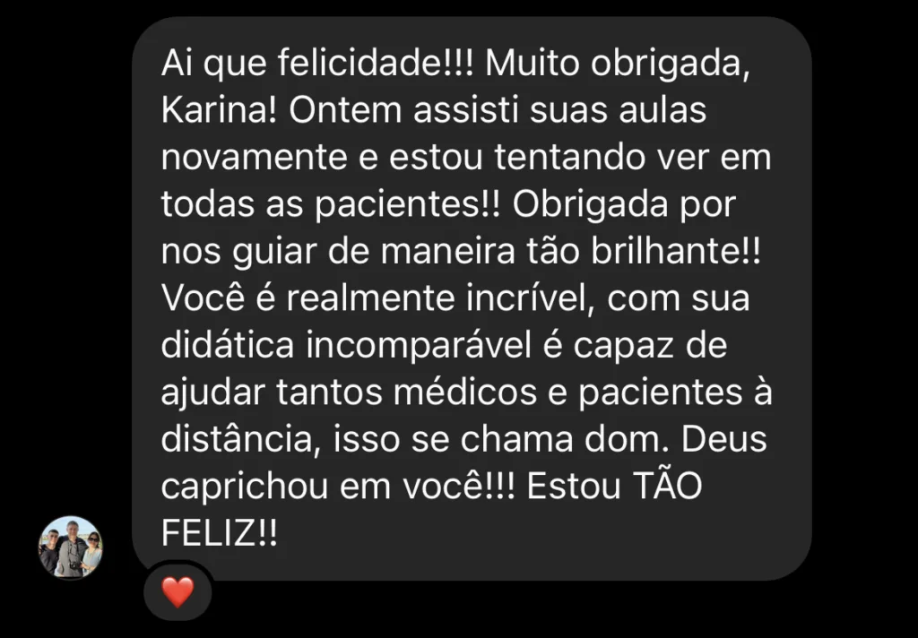 eu, Karina, sistematizo meu exame de endometriose, com paciente real, ali, na hora.”